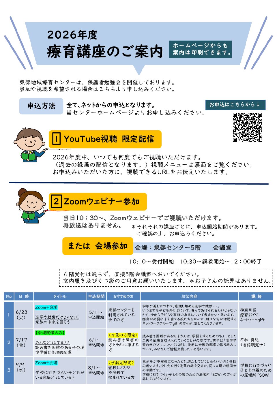 >印刷用2026年度療育講座のご案内<(別ページで開きます)