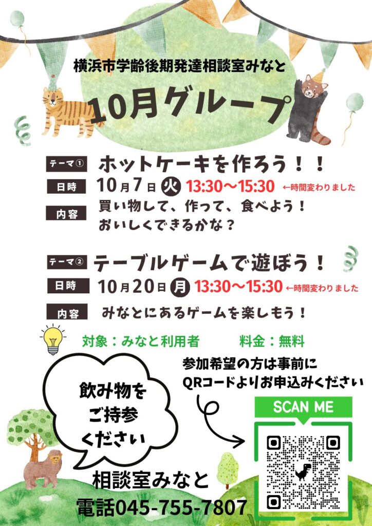 10月のグループ案内を掲載いたします。10月から時間が変わります。13:30~15:30です。